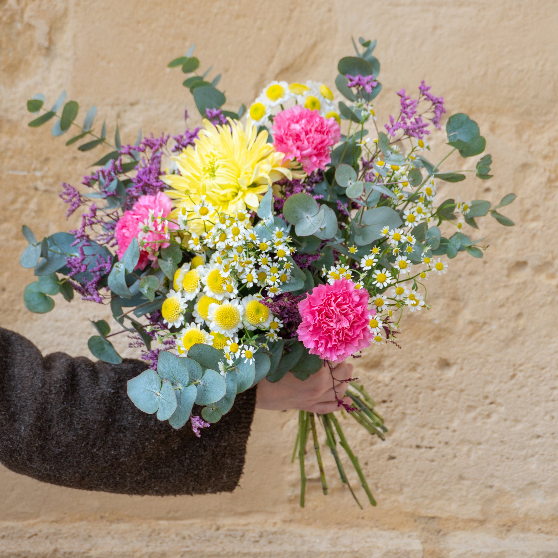 Chaque bouquet est unique, réalisé avec cœur, pour rester fidèle à l'énergie joyeuse et spontanée de ce modèle.
